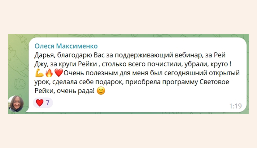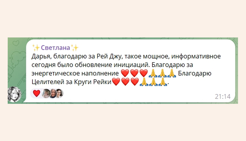 Поддержка и обратная связь от коллег и опытных Мастеров Рейки